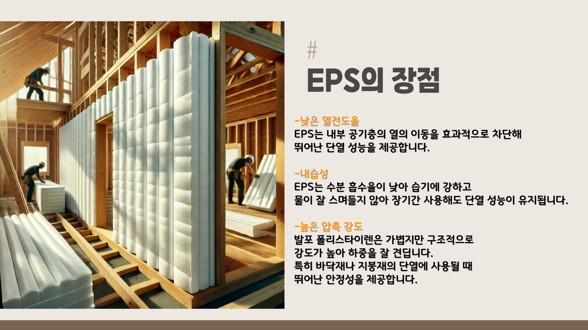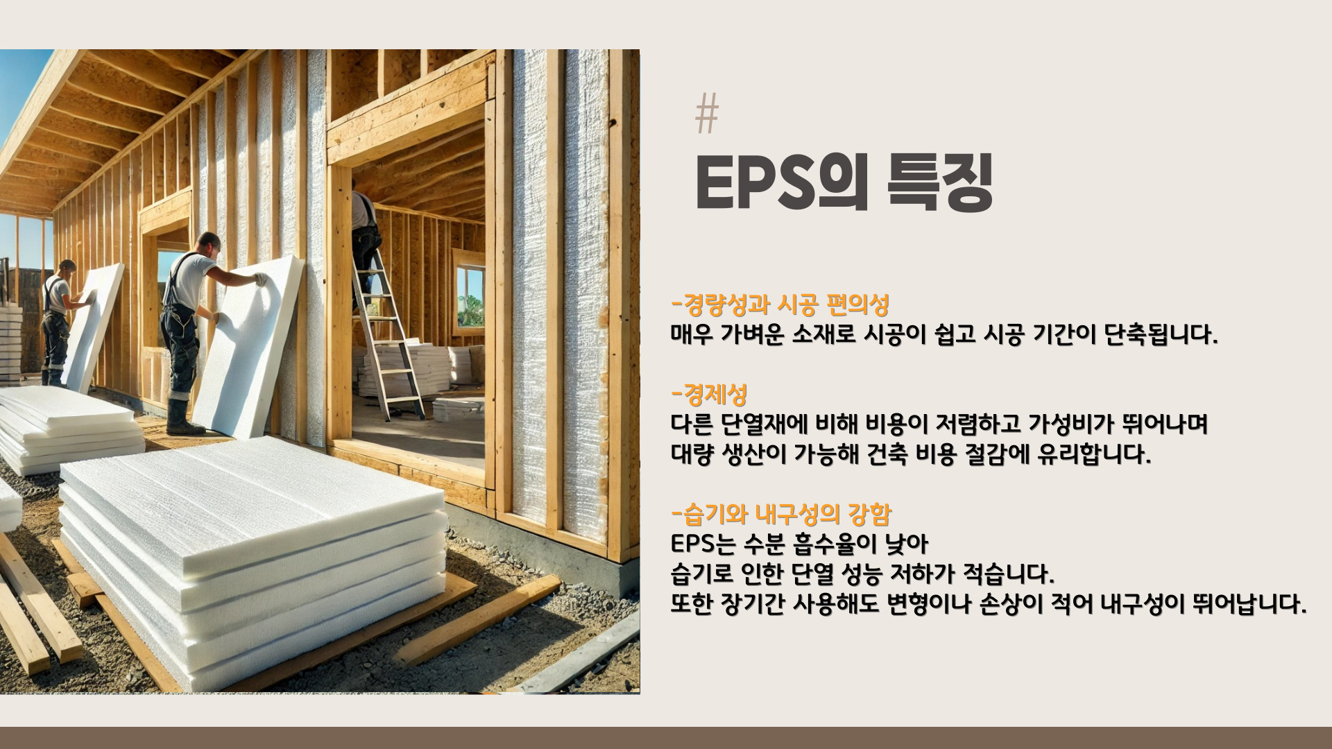 가볍고 단열성이 뛰어나며 발포 폴리스타이렌 소재의 EPS