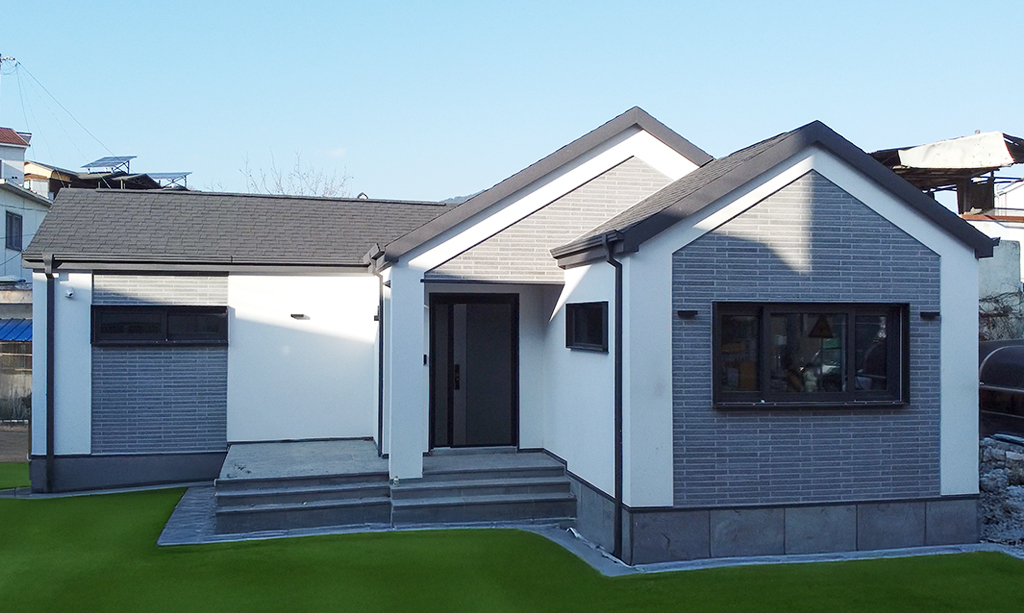 아스팔트싱글 지붕과 어우러져 안정감 있는 외관을 완성합니다.